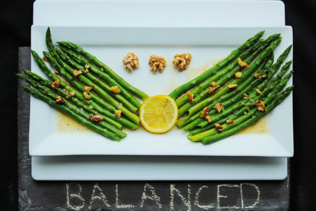 Balanced Asparagus with Lemon Walnut Butter.