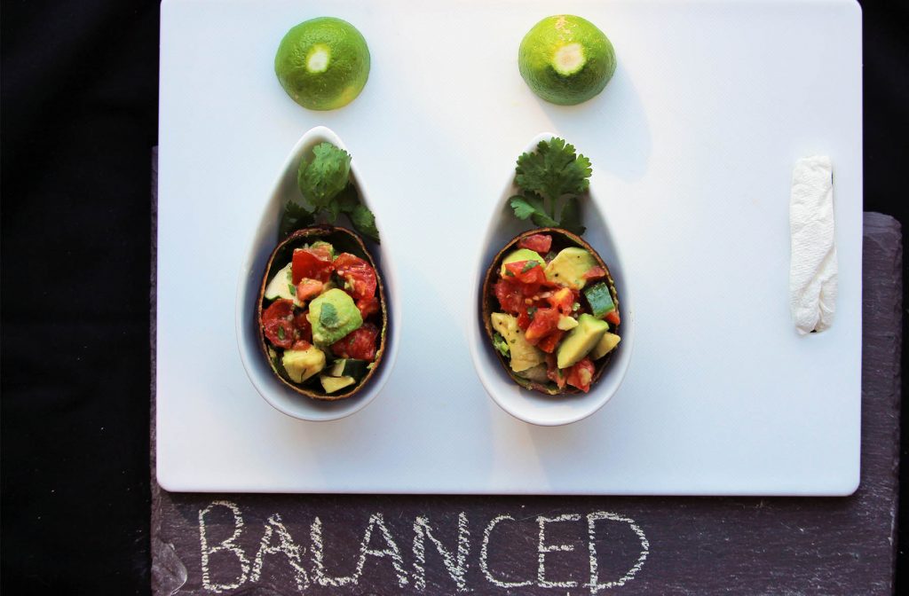 Balanced Avocado Tomato Cucumber Salsa Boats.