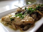 The main course – Stuffed Chicken Valentino in Champagne Mushroom Sauce – sounds as decadent as it tastes (so…I just had to include it in this menu). I made this dish for a Valentine’s Day catering gig many moons ago and it was a HIT.  My hungry customers loved it and ate it right up with their loves (some even reported that it was ‘the’ dish that won their Valentine over…I’ll leave that to your imagination). Make it, love it, you’ll be glad you did…I assure you.  Whatever works, if ya got it, flaunt it I say. Put your heart and soul into this meal, love every minute and be love.