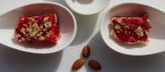 Make balsamic glaze by gently reducing balsamic vinegar over a low heat in a saucepan (start with double the amount – 8 tablespoons and slowly reduce to half of the amount). Chop almonds and dry roast slightly on low heat in a small frying pan. Watch closely!