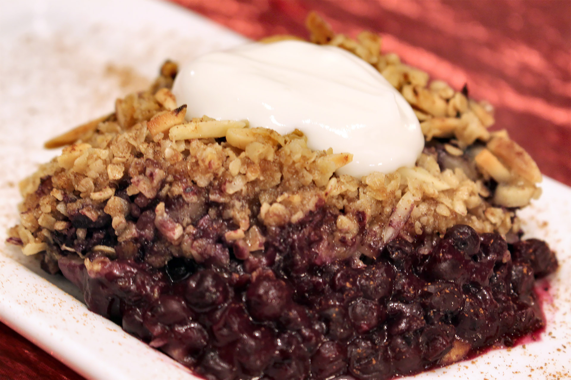 Bake until the fruit is bubbling and the topping is golden, 20 to 25 minutes. Let stand for at least 10 minutes before serving. Top with yogurt and enjoy your comfort ‘n joy.