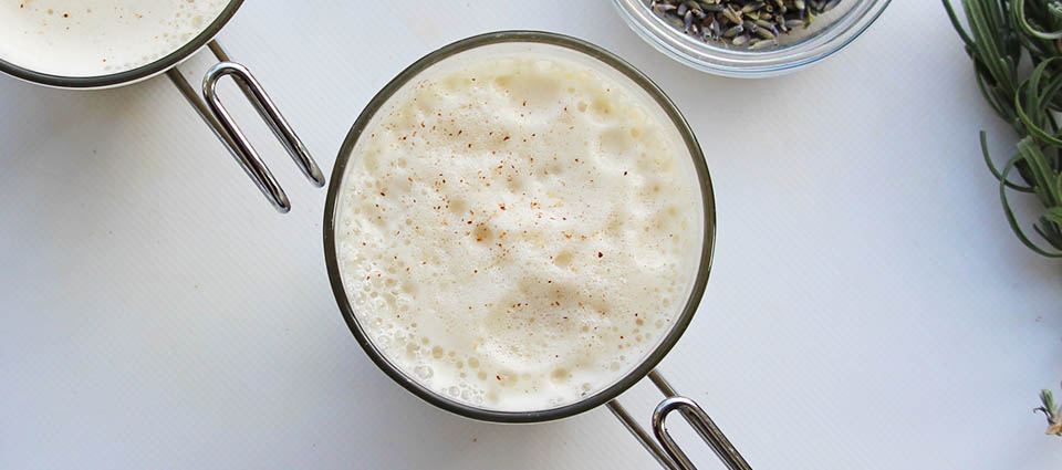 This calming, warm tea is just the thing to help unwind and relax after a long day. Chamomile tea is steeped directly in the almond milk and lightly sweetened. Add dried lavender flowers for an extra calming effect. Lavender is also used for baking, syrups, liqueurs, teas, spice blends (Herbes de Provence). Known for its strong floral scent, is sweet-tasting with a hint of citrus.