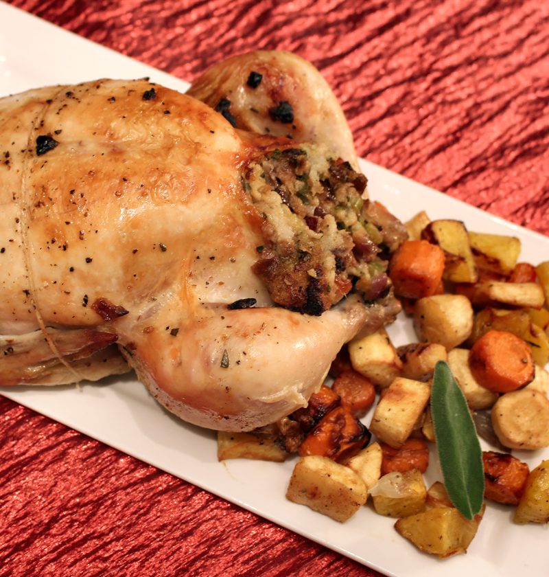 “Feliz Navidad” Turkey with Onion Sage Stuffing, Homemade Pan Gravy & Cranberry Sauce