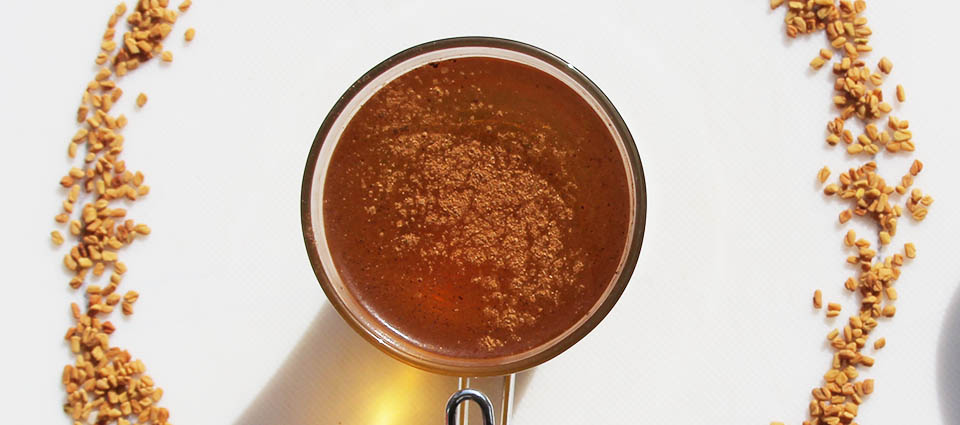 Using a mortar and pestle, lightly crush the fenugreek seeds. Boil water, add fenugreek seeds and steep for 5 minutes 5 Minutes! Strain into a tea strainer, pour into your favourite mug, stir in honey, dust with cinnamon and enjoy.