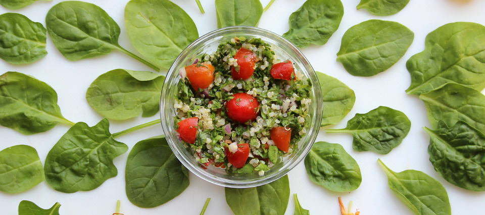 Add parsley, mint, oil, lemon juice, tomato and salt and pepper. Mix thoroughly, adding more lemon juice (to taste). Adjust salt to taste. *Bulgur wheat is traditionally used to make this dish, however, it is not gluten-free (GF), I prefer to use quinoa which is GF.