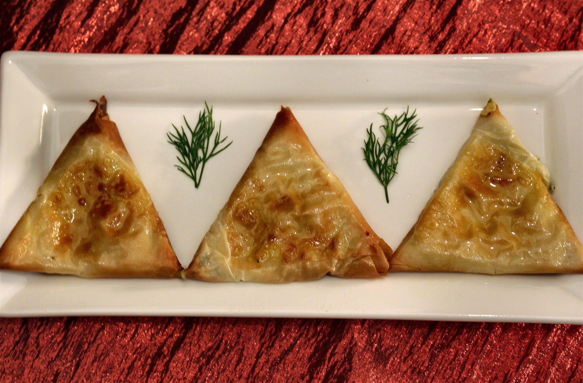 A Taste of Greece. Crispy phyllo triangles stuffed full with feta cheese and herbs.