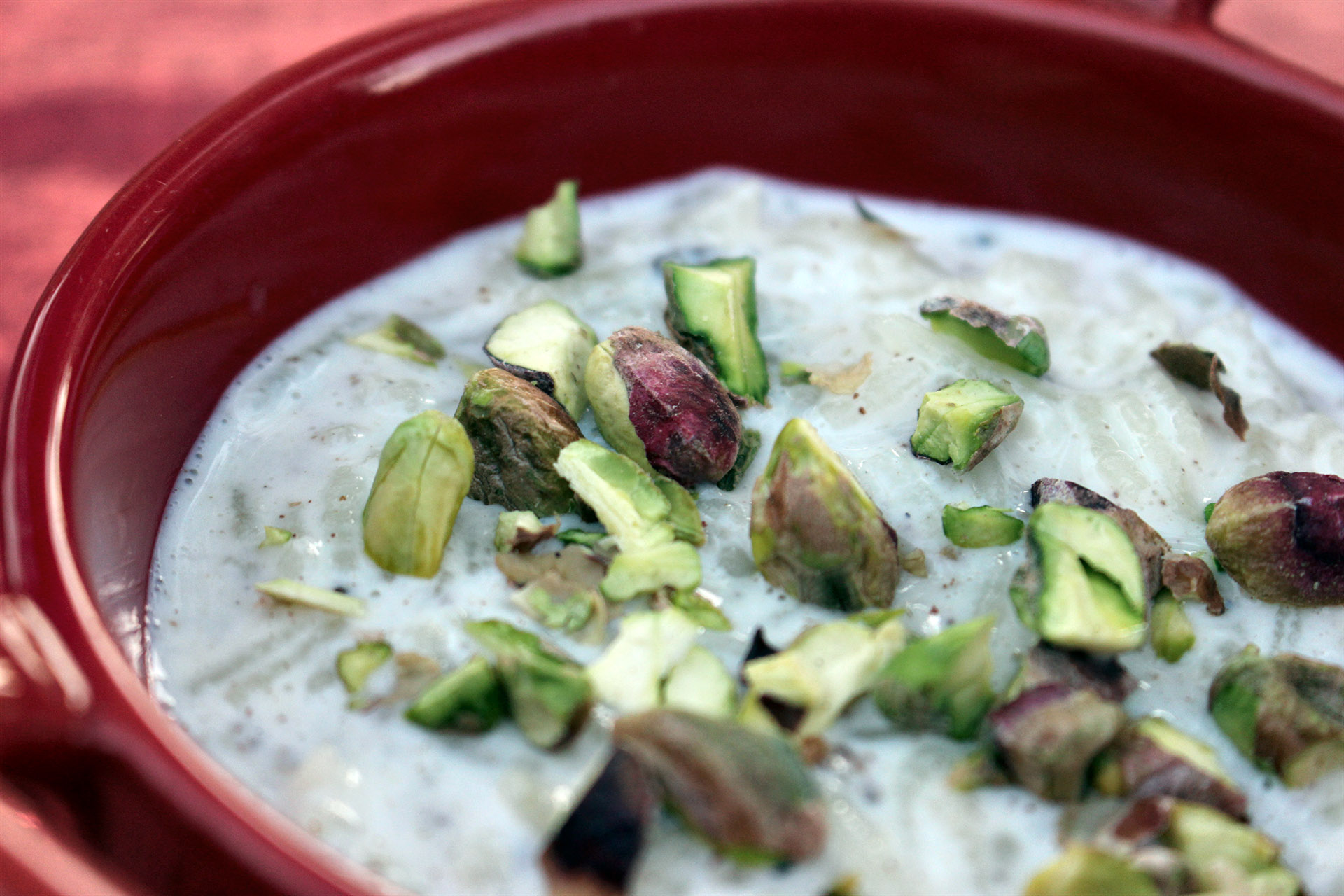 This rice pudding has a nice twist to it, definitely not your traditional rice pudding (I know, I grew up with many, many rice puddings in my lifetime). It takes time and a lot of stirring, but it’s worth the effort, trust me on that. I love the flavours that the spices add and the crunch of the pistachios add a nice crunchy texture to this dish!