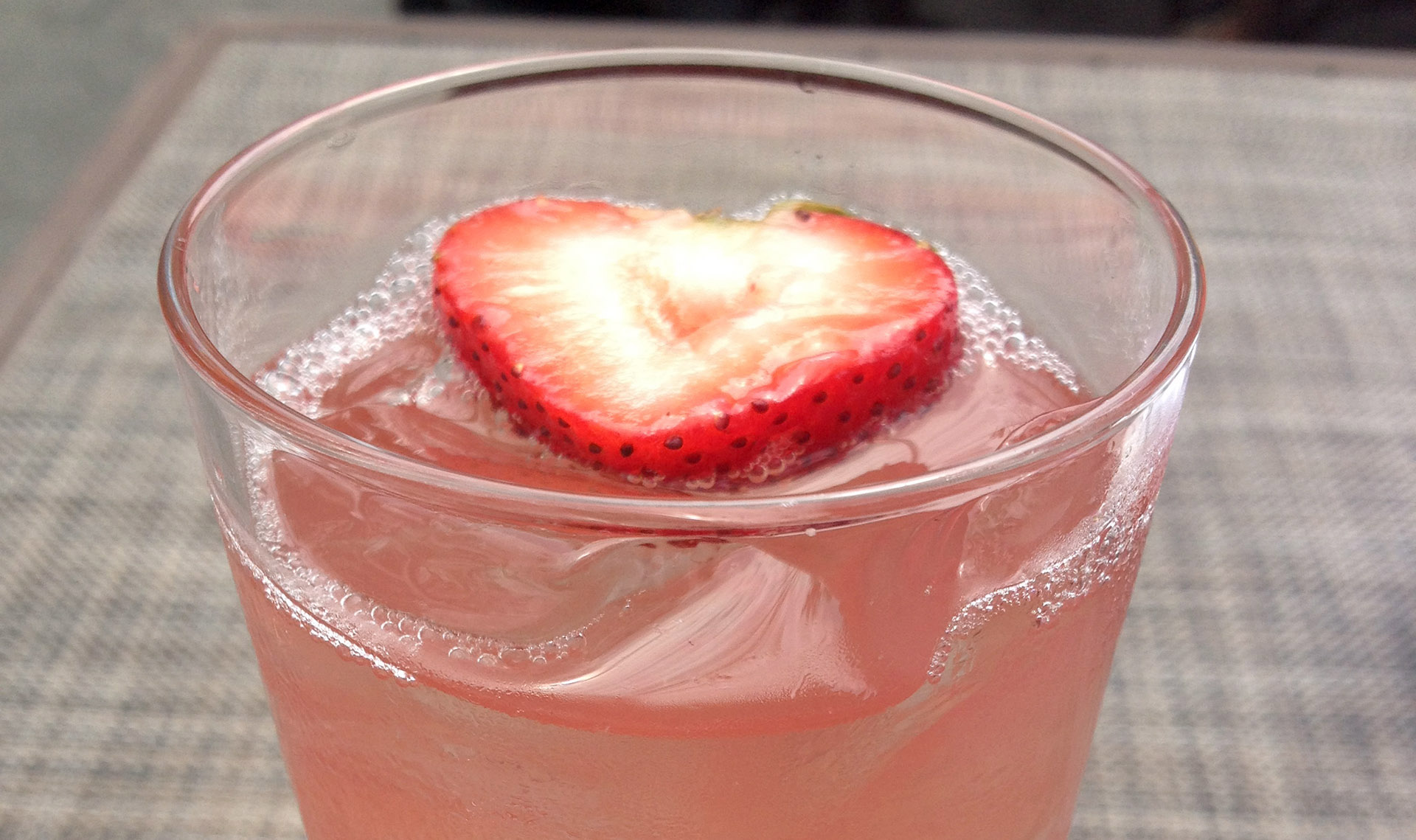 Muddle the basil and strawberries together. Pour all the ingredients over ice, shake (not stir) and best of all, enjoy this love potion with your Valentine!