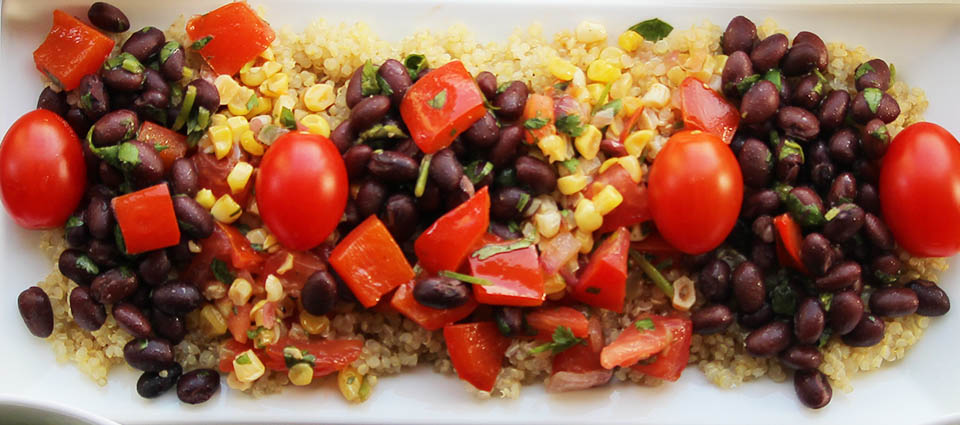 Red Pepper Black Bean Salsa: Heat a sauté pan with oil over medium-low heat. Add red pepper, sauté until the pepper is tender. Add the black beans and toss until warm. Turn heat off, add cilantro, lime juice, salt and pepper. Mix well.