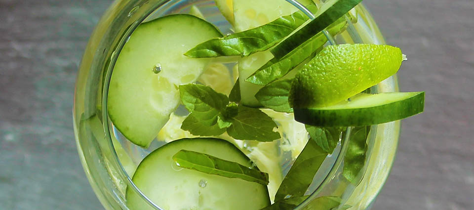Add lime, mint, cucumber and water to a small pitcher. Muddle mixture until flavours are co-mingled and add ice.