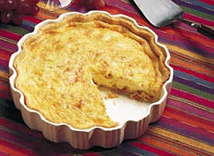 Bake approximately 20 minutes until the Quiche is lightly browned on top. Sprinkle with chives and Fleur de Sel and serve hot.