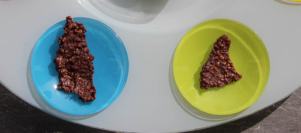 Add maca and crispy quinoa, coating well. Add anise, sesame seeds, chia seed to chocolate.