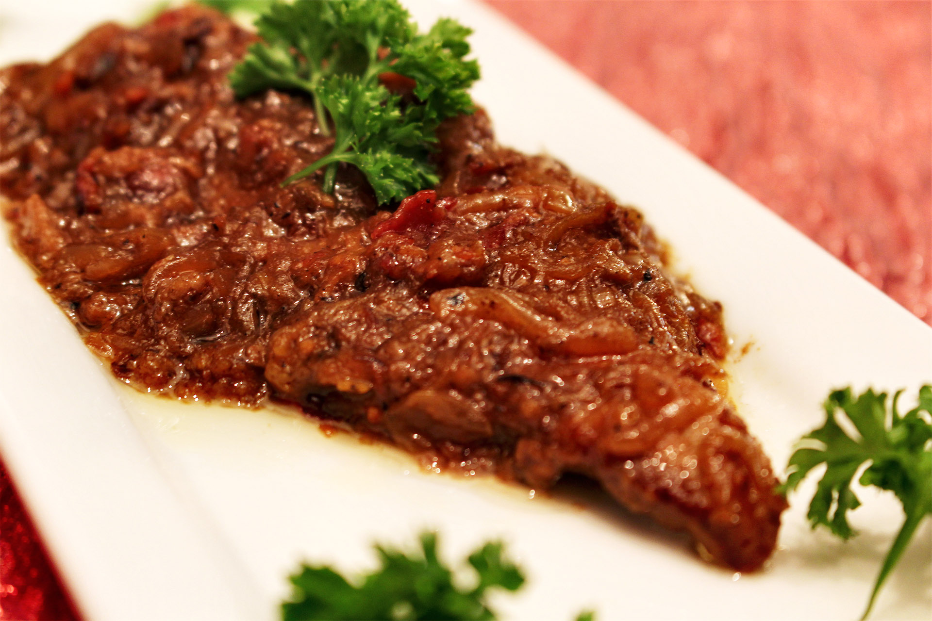 Melt remaining butter in the skillet, turn the heat up to medium-high, and place the coated liver slices in the pan. Cook for 2-3 minutes 2 Minutes on each side until nice and brown. Remove pan from heat, add sherry and beef broth, return pan to heat and shake and flambé (light on fire to flame). Turn liver over once more and cook for about 2 minutes 2 Minutes more until cooked through.