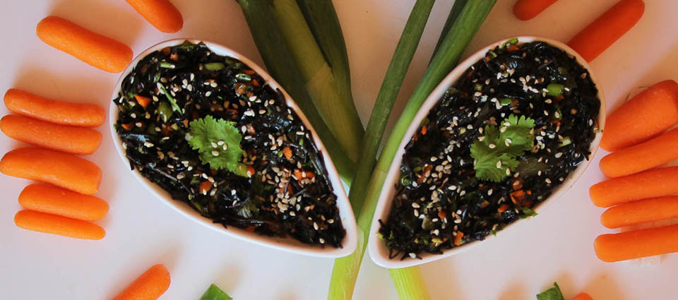 This seaweed salad recipe is a deliciously healthy Japanese dish. It's sustainable (seaweed) and loaded with nutrients like fiber, vitamins and minerals like iron. Sea vegetables are virtually fat-free, low calorie and are one of the richest sources of minerals in the vegetable kingdom. All of the minerals required by human beings, including calcium, sodium, magnesium, potassium, iodine, iron, and zinc are present in sufficient amounts. It also contains vitamins as vitamin A, B1, B2, B6, niacin, C, pantothenic & folic acid. Sea vegetables have been shown to cleanse the body of toxic pollutants. Other health benefits include regulating the hormones, enriching the bloodstream, assisting in digestion & metabolism, promoting a youthful skin color, and helping to warm the body to promote mental youthfulness. So enjoy this nutritionally-packed food, one of the best on the planet!