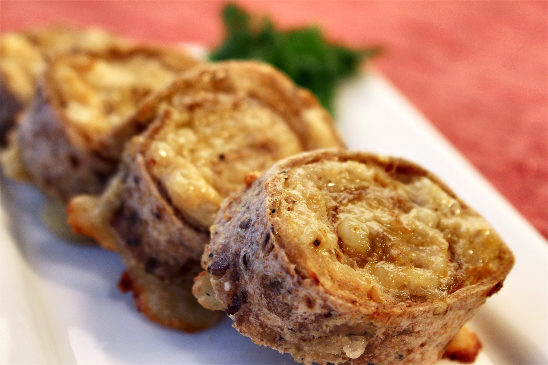 Lay out 3 tortillas and divide the filling into thirds. Spread filling out evenly with a spatula (or your hands if you prefer hands-on) and tightly roll up the tortillas. Refrigerate 2 hours 120 Minutes (seam side down).